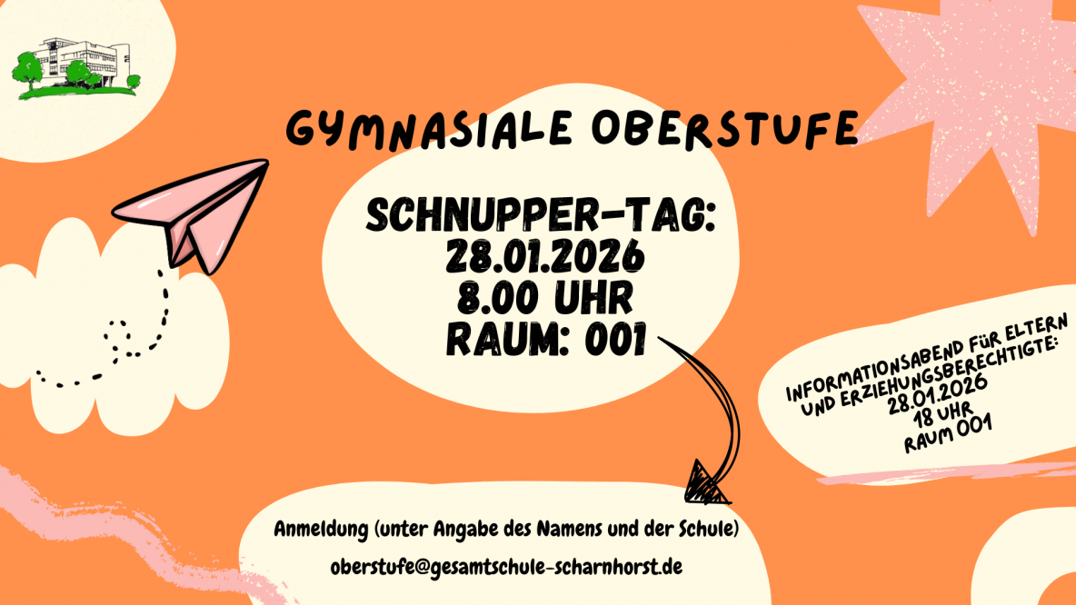 Am 28.01.2026 haben interessierte Schülerinnen und Schüler der 10. Klasse die Möglichkeit, sich unsere Oberstufe genauer anzusehen.